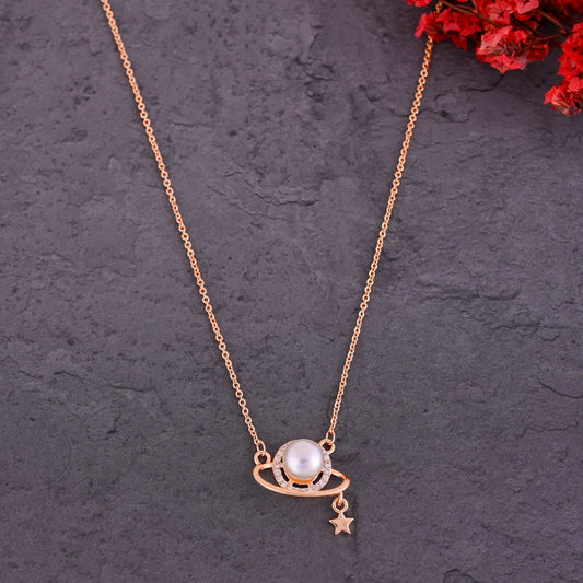 CKLAKART's Rose Gold-Toned Neckpiece Featuring Galaxy Pendant with American Diamonds and Pearl