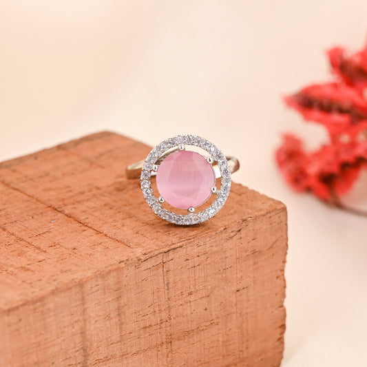 CKLAKART's NOOR Silver-Toned Ring Adorned with Pink Stones and Dazzling American Diamonds