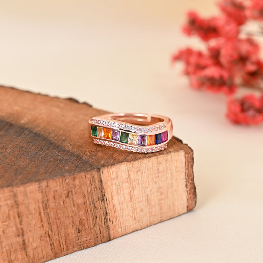 CKLAKART's Rose Gold Tone Cocktail Ring with Colorful Stones