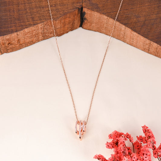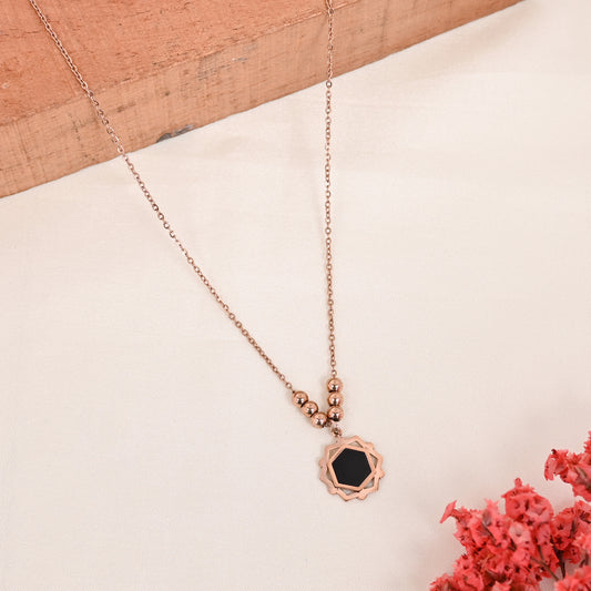 CKLAKART's Rose Gold Toned Geometric Pendant with Elegant Beaded Chain