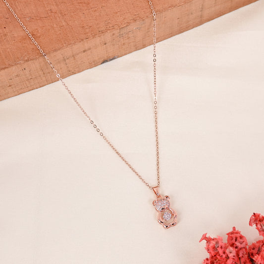 CKLAKART's Rose Gold Toned AD Studded Bear Pendant Necklace with Chain