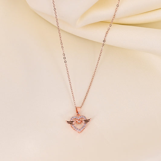 CKLAKART's Rose Gold Toned Cupid's Heart Pendant with Sparkling AD and Chain