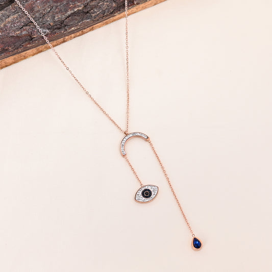 CKLAKART's Rose Gold Tone Evil Eye Pendant Necklace