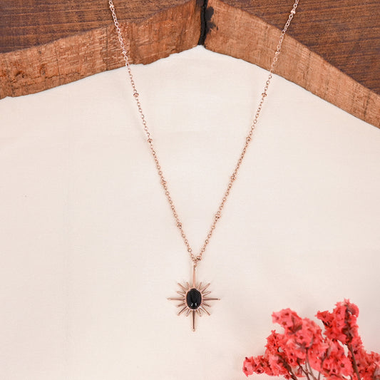 CKLAKART's Rose Gold Toned Sparkling Sun Pendant with Beaded Chain