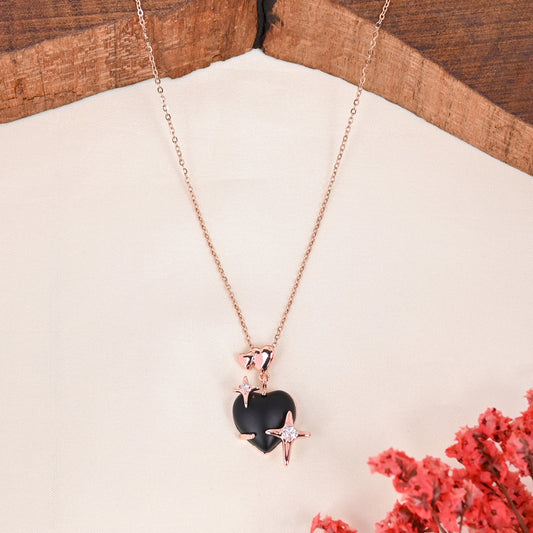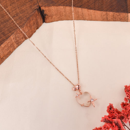 CKLAKART's Rose Gold Toned Sparkling Heart with Stars Pendant with Chain