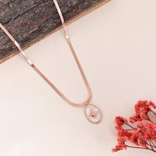 CKLAKART's Rose Gold Toned Oval Shaped White Pendant with Snake Chain