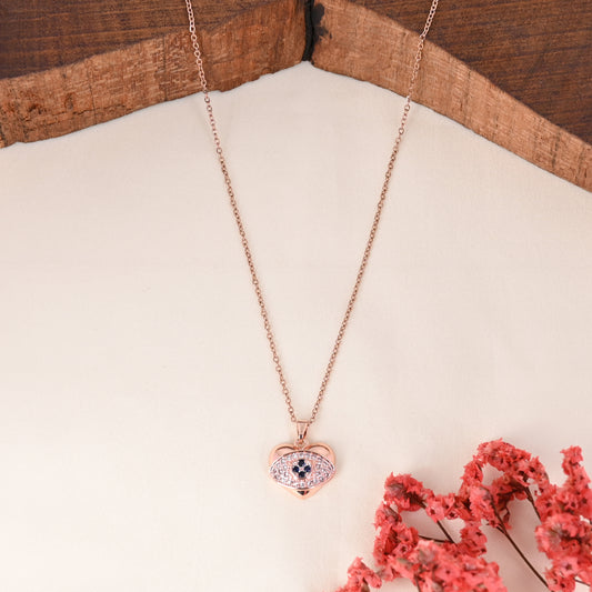 CKLAKART's Rose Gold Toned Heart Shaped Pendant with Evil Eye Necklace
