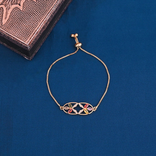 CKLAKART's Gold Tone Bracelet with Sparkling American Diamonds and Multi-Color Stones
