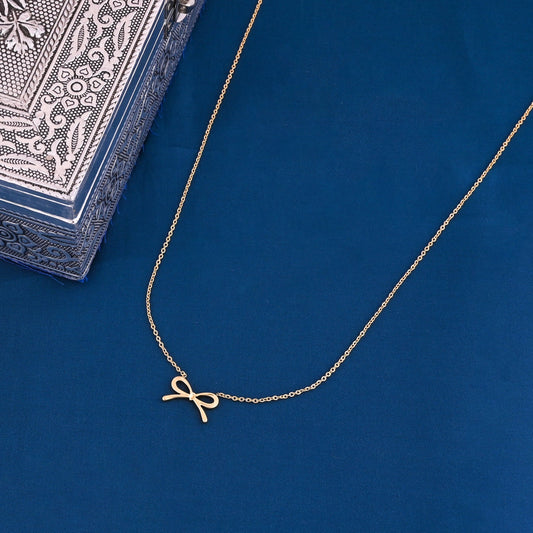 CKLAKART's Gold Tone Chain Necklace with Bow Pendant