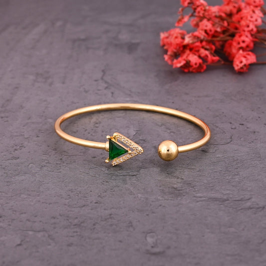 CKLAKART's Gold Toned Bracelet with Triangles and Sparkling American Diamonds and Emerald Green Stone