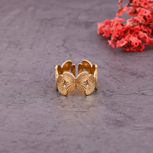 CKLAKART's Gold Toned Statement Ring Embellished with Butterflies