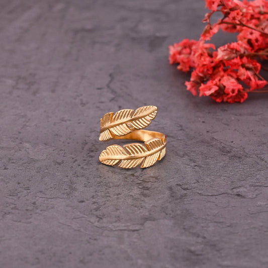 CKLAKART's Gold Toned Statement Ring Featuring Leaf Pattern