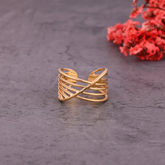 CKLAKART's Gold Tone Statement Ring with Wavy Accents