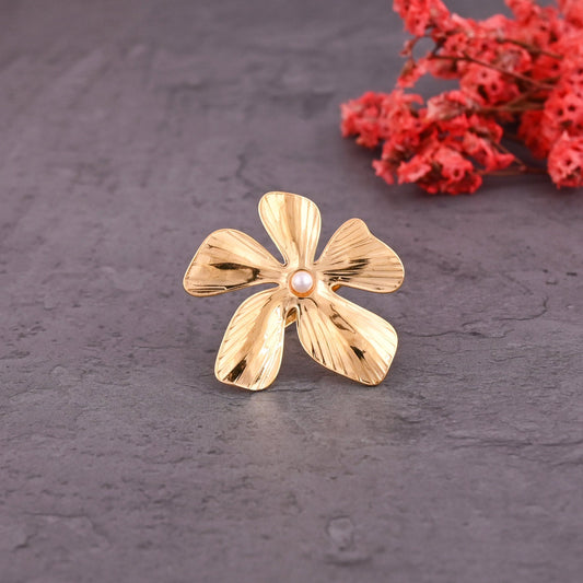 CKLAKART's Gold Tone Cocktail Ring Featuring Blooming Flower Design