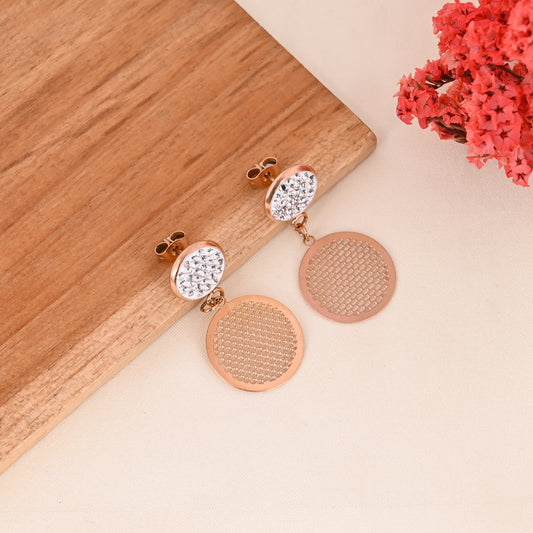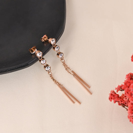 CKLAKART's Rose Gold Dangler Earrings Adorned with Sparkling Stones
