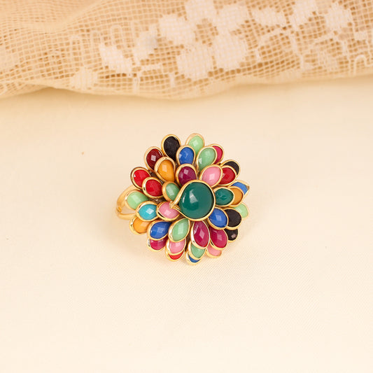 CKLAKART's Gold-Toned Floral Ring Embellished with Multicolored Stones