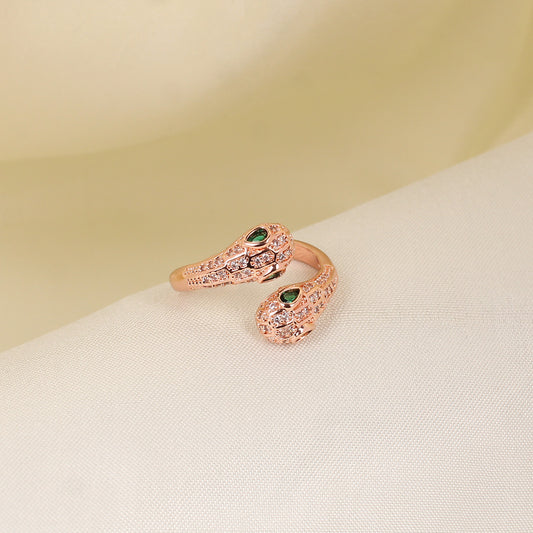 CKLAKART's Serpent's Charm Adjustable Rose Gold Ring with Green Stones and Zirconia