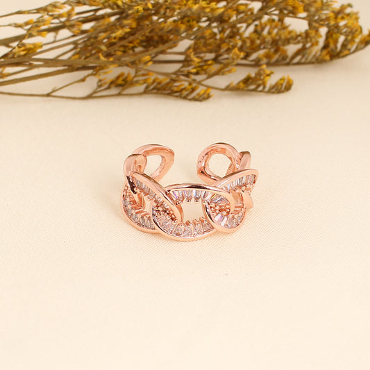 CKLAKART's Band-Shaped White Stone Rose Gold Adjustable Ring