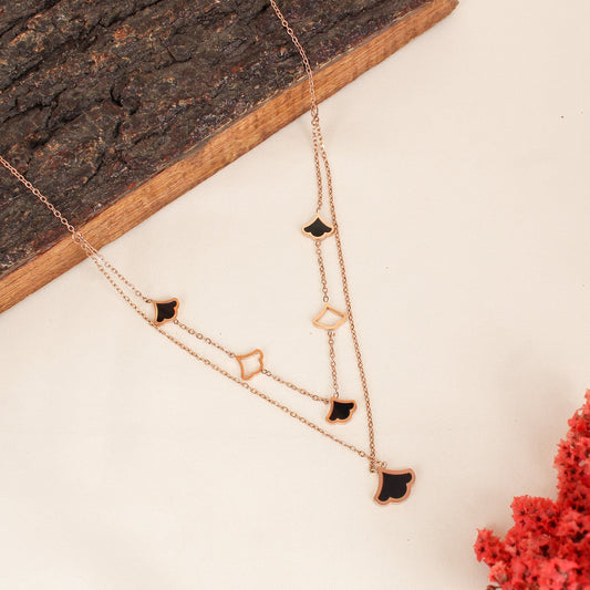 CKLAKART's Rose Gold Double Layered Chain Neckpiece with Graceful Petals
