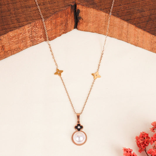 CKLAKART's Rose Gold Toned Necklace with Pearl Pendant Accent