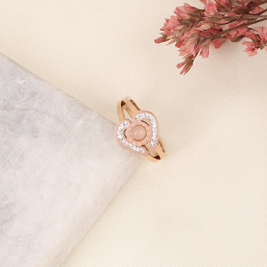 CKLAKART's Rose Gold-Toned Heart-Shaped Studs with American Diamonds