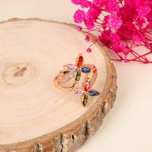 CKLAKART's Butterfly-Shaped Rose Gold Ring with Multicolored Gems