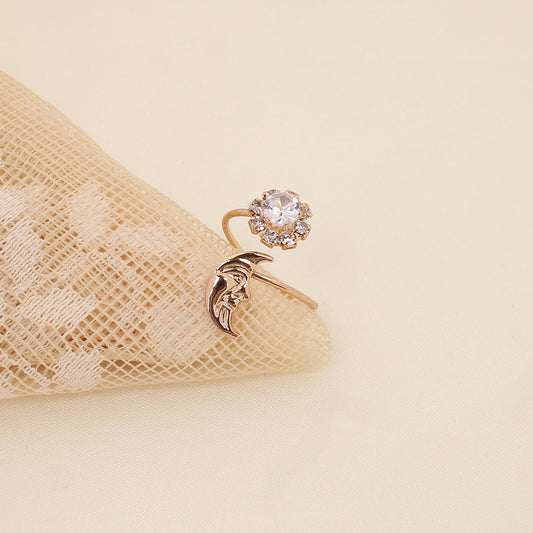 CKLAKART's Rose Gold Moon Ring with White Floral Accent