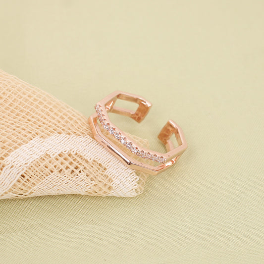 CKLAKART's Rose Gold Hexagon Band Ring with Sparkling White Stones