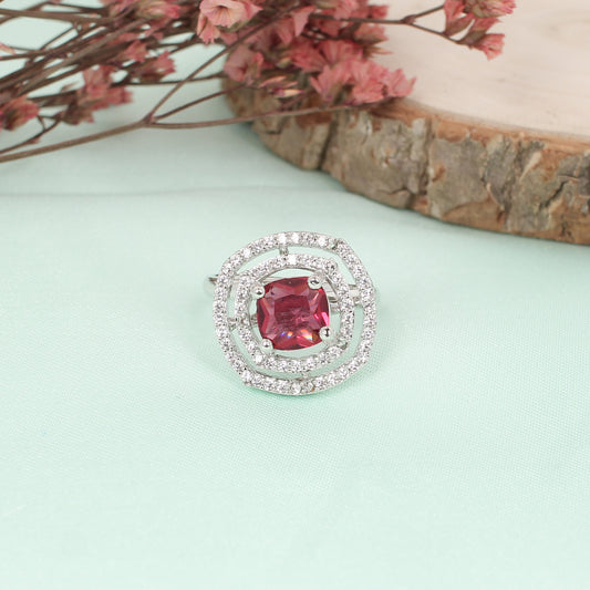 CKLAKART's Silver-Toned Ring adorned with American Diamond and Ruby