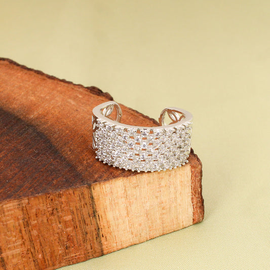CKLAKART's Silver-Toned Band Ring Adorned with Shimmering White Stones