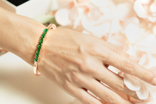 CKLAKART's Rose Gold Bracelet with Mesmerizing Green Stone Adornments